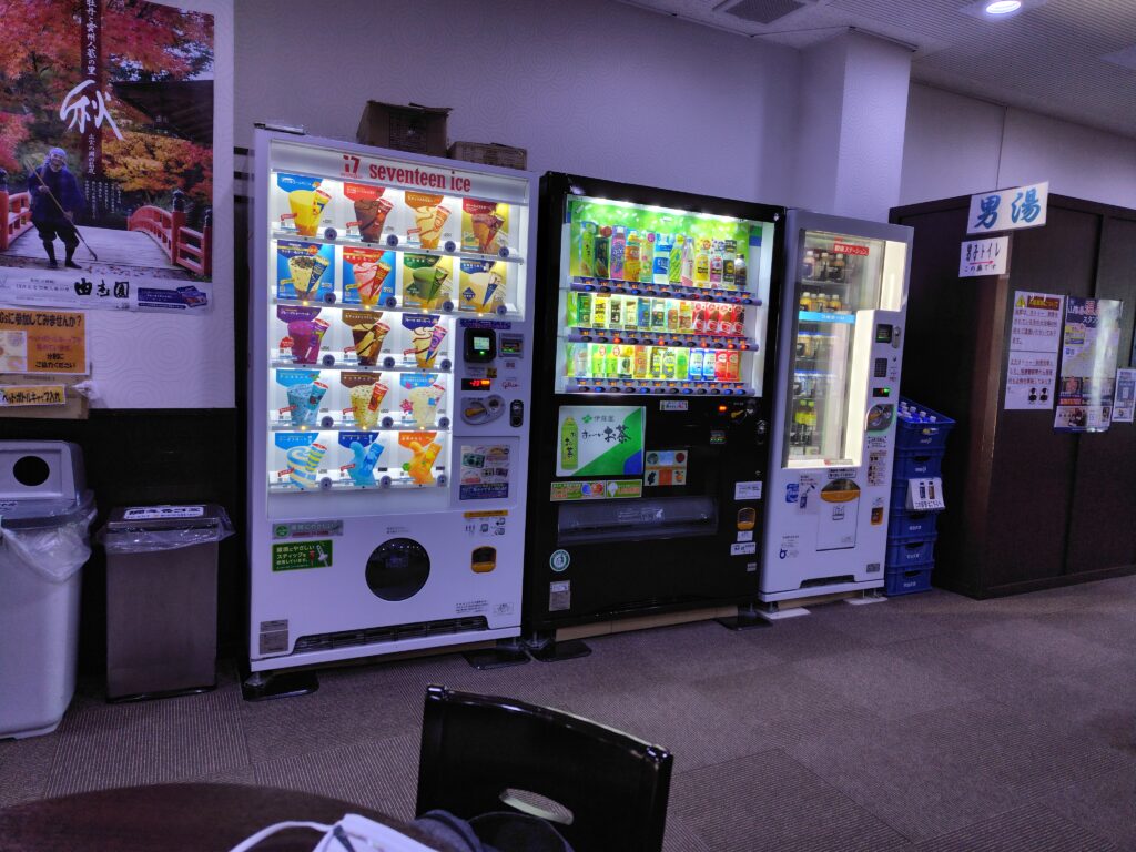 休憩室には複数台のドリンク自販機が設置されており、風呂上がりの水分補給に困ることは無いと思います。