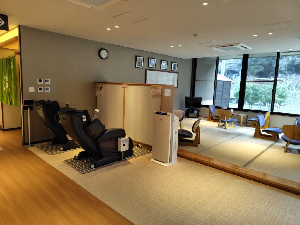 ソファーの他に畳敷きのお座敷やマッサージチェアも設置されています。